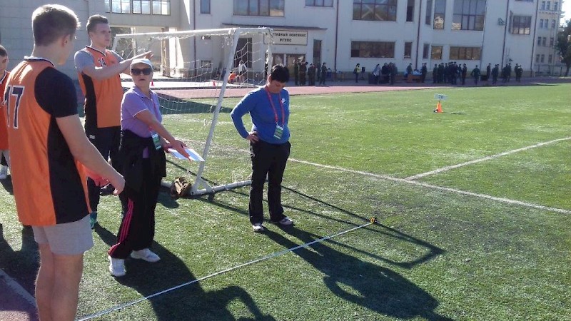 Преподаватели кафедры «Физическое воспитание и спорт» и офицеры военного факультета РГУПС - организаторы и арбитры соревнований по военно-спортивной подготовке «К защите Родины готов» школьников 11-х классов