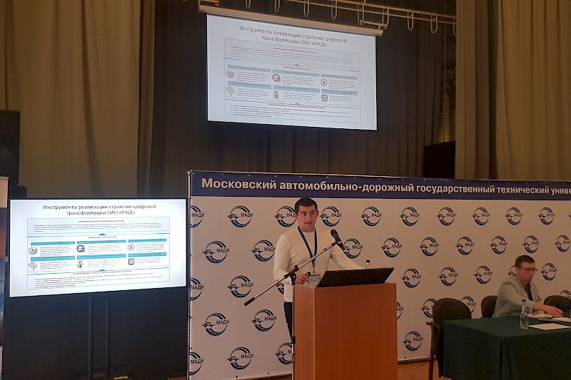 На круглом столе «Арктические технологии и инновации совершенствования транспортных систем» выступил к.т.н. доцент кафедры «Станции и грузовая работа» Задорожний В.М. с докладом «Инструменты построения транспортно-логистических систем: методы и цифровая трансформация».