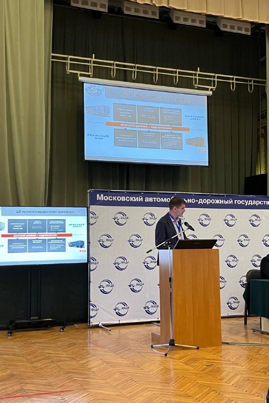 В рамках транспортной сессии «Комплексное развитие транспортной инфраструктуры Арктической зоны» выступил к.т.н. доцент руководитель практики РГУПС Бакалов М.В. с докладом «Цифровые двойники в транспортно-логистических системах».