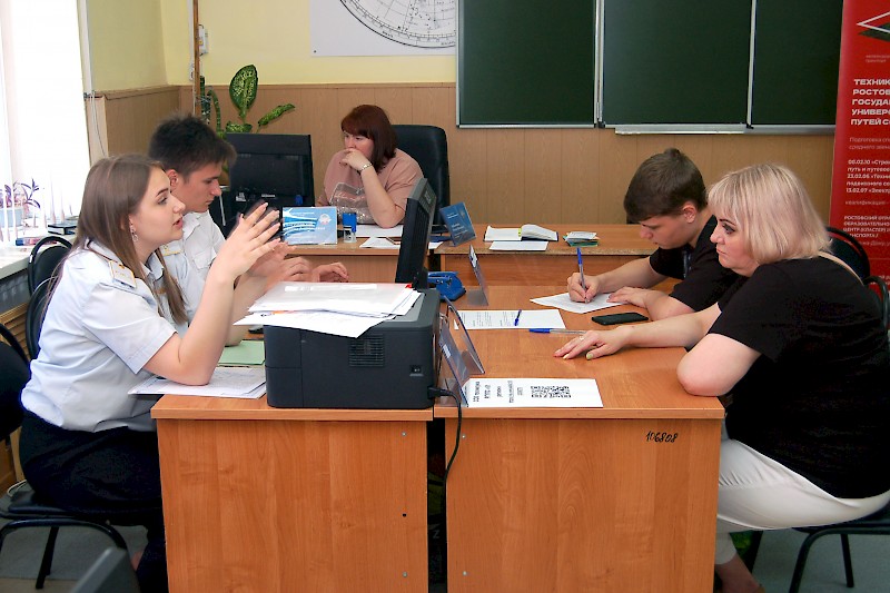 Первые абитуриенты, желающие обучаться в Ростовском отраслевом образовательно-производственном кластере железнодорожного транспорта, стали прибывать в приемную комиссию техникума РГУПС.