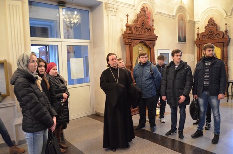 Круглый стол «Самоуправление в студенческих общежитиях». Модератор директор студенческого городка И.И. Корнева; Встреча с иереем Храма святого праведного Иоанна Кронштадтского Романом Листровым.