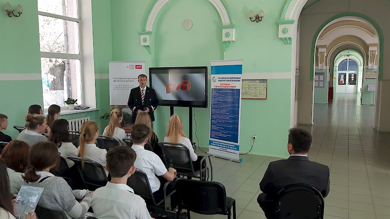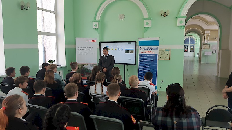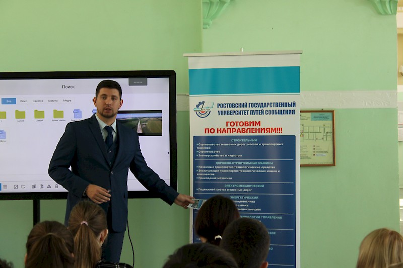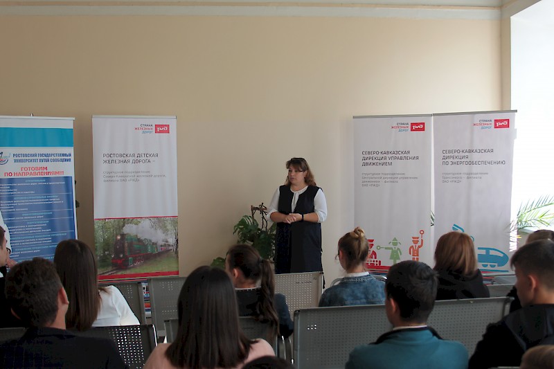 Участники «Мобильный вагон-профнавигатор» рассказали обучающимся общеобразовательных учреждений о железнодорожных профессиях, о работе железнодорожников, а также о перспективах развития отрасли. Начальник отдела довузовской подготовки и профориентационной работы РГУПС К.С. Фисенко рассказал школьникам о специальностях и направлениях подготовки в университете, возможностях интересной студенческой жизни будущих абитуриентов.