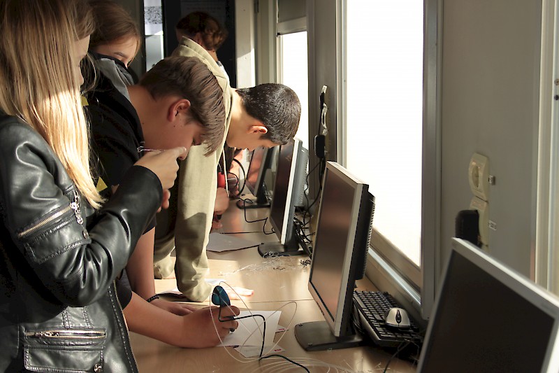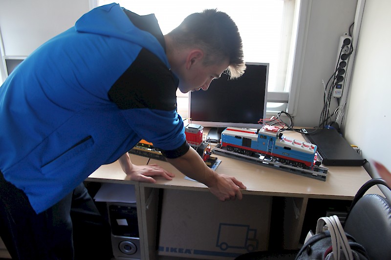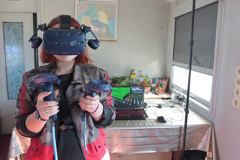 Разработку студентов факультета ИТУ РГУПС «Виртуальный тренажер осмотрщика вагонов» школьникам демонстрировал студент факультета С. Семенов.