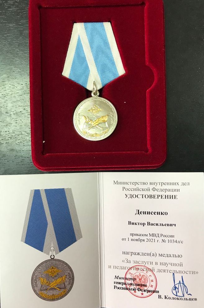 Профессор кафедры «Административное право и уголовно-правовые дисциплины» В.В. Денисенко награжден медалью «За заслуги в научной и педагогической деятельности»