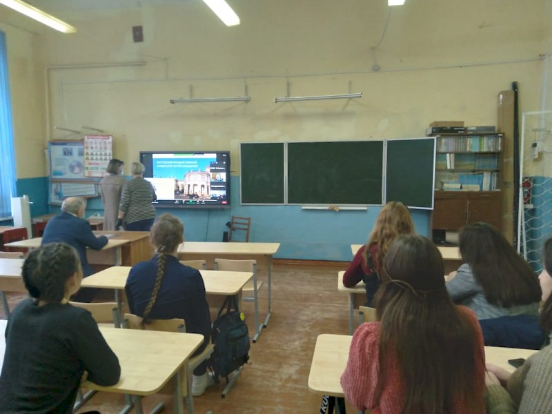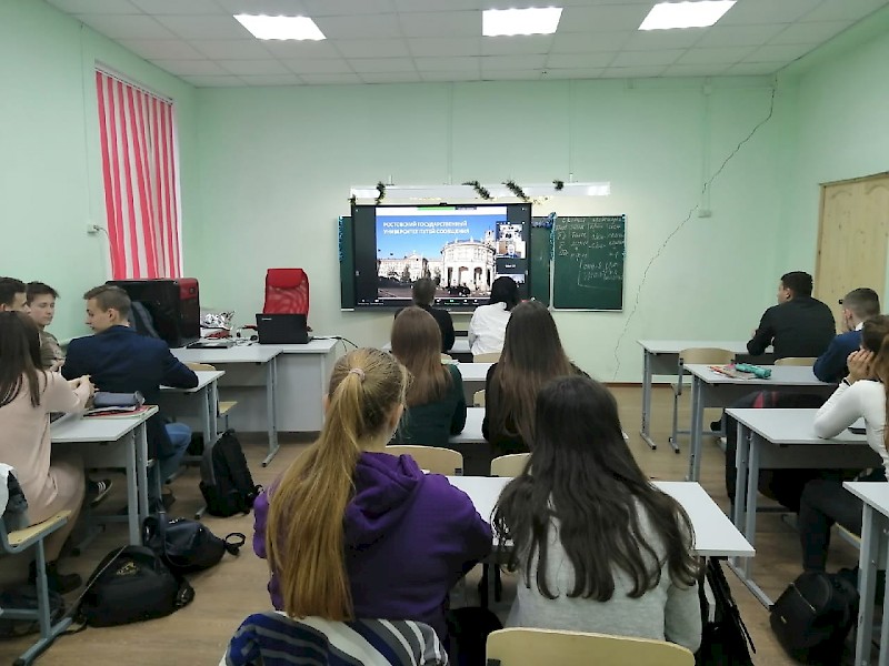 Члены рабочей группы университета выступили перед учащимися и преподавателями с информацией о Ростовском государственном университете путей сообщения, его структуре, материальной, учебной и научной базе и правилах поступления и обучения в ВУЗе по направлениям подготовки: «Сервис в гостинично-ресторанном бизнесе», «Туризм», «Государственное и муниципальное управление», «Реклама и связи с общественностью» и «Управление персоналом».
