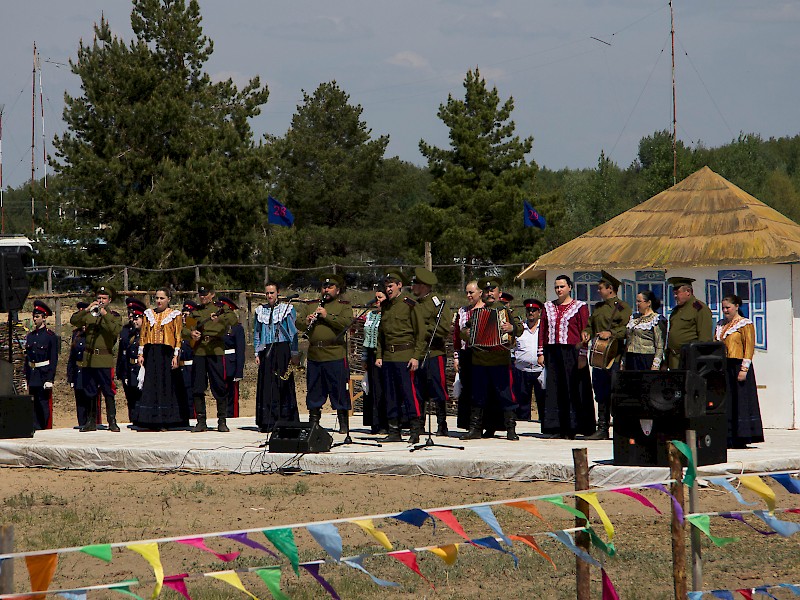 Особый интерес у гостей праздника вызвала новая театрализованная композиция «Скачки у Царёва пруда», по мотивам произведений М.А. Шолохова,которая перенесла зрителей в начало ХХ века. На территории ипподрома был воссоздан подлинный казачий лагерь.