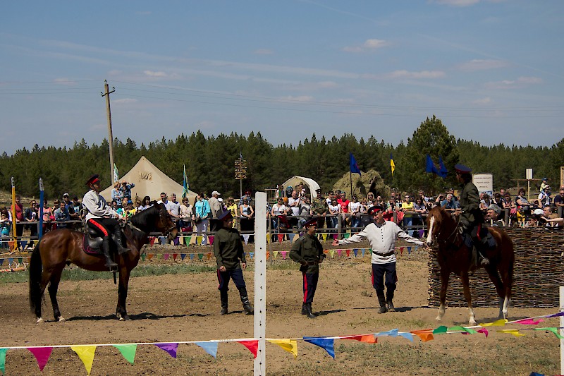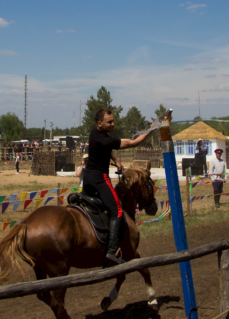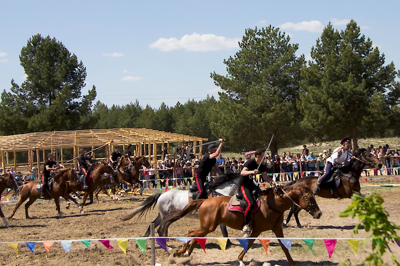 Яркие впечатления подарили зрителям показательные выступления: зажигательные скачки, казачья лава, для которой нет преград, джигитовка, фланкировка шашкой и пикой, а также основные приемы, которые использовали казаки в бою: казачий вис с отстрелом назад, сед на шее лошади, «муля» (скачка сидя боком), обрыв, скачка лёжа поперёк седла, вниз головой, на двух лошадях одновременно, подбор предмета на скаку.