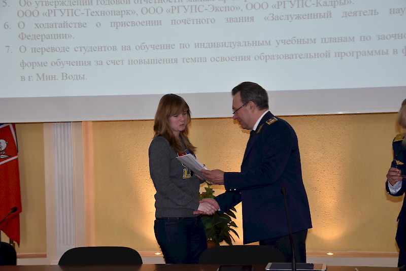 Ректор РГУПС В.Д. Верескун на Ученом совете вручил заслуженные награды лучшим сотрудникам университета