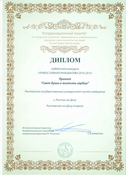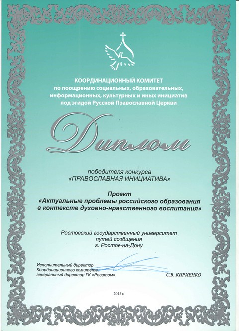 Ростовский государственный университет путей сообщения вошёл в число победителей международного открытого грантового конкурса «Православная инициатива 2015-2016» с проектом «Святители и святые земли Русской (местночтимые святые)».