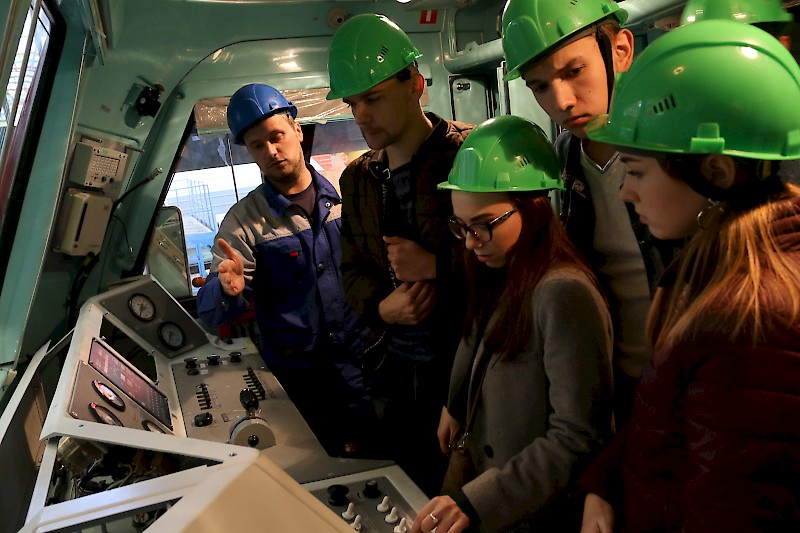Сотрудники отдела оценки и развития персонала Новочеркасского электровозостроительного завода познакомили студентов с кузнечно-прессовым, механосборочным, холодноштамповочным, обмоточно-изоляционным, сварочным производством элементов деталей и узлов тягового подвижного состава. В сборочном цехе предприятия ребята детально рассмотрели панель пульта управления, устройство механической части, электрических аппаратов и электрооборудования подвижного состава на примере нового электровоза серии 3ЭС5К.