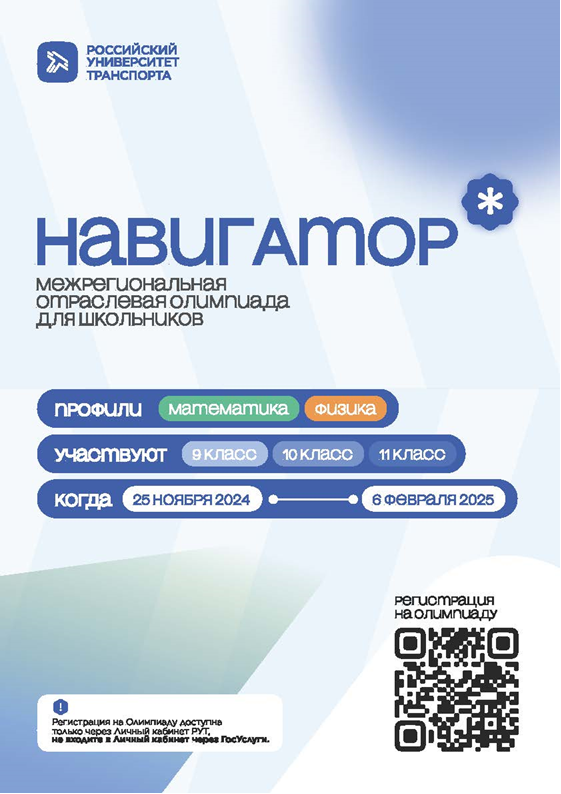 Продолжается регистрация на Межрегиональную отраслевую олимпиаду школьников «Навигатор» по профилю Физика и Математика.