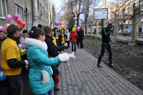 Акция проходит в общежитии №3 РГУПС. Студенты старших курсов пришли поддержать участников тестирования танцами, сценками, призывающими к ведению здорового образа жизни, в небо выпустили воздушные шары, как символ стремления к полноценной здоровой жизни.