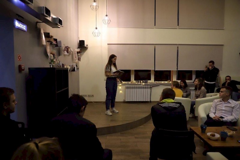 Темой вечера стала «Современная поэзия», были затронуты такие темы в литературе и сознании молодежи как «Время», «Осень», «Любовь». С большим интересом делились своим творчеством студенты-первокурсники, для многих этот поэтический вечер в данной обстановке стал первым. Ребята читали стихи, общались на философские темы, делились своим музыкальным творчеством (читали реп).