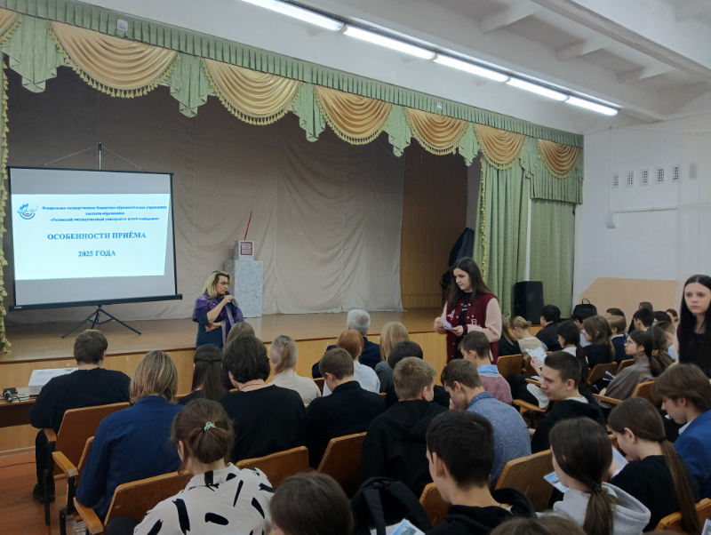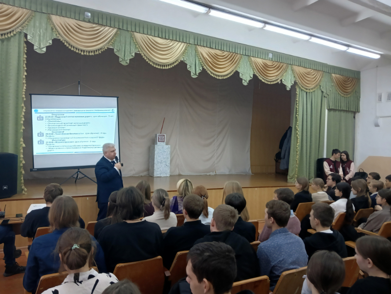 Встреча прошла в МАОУ СОШ № 6 им. С.Т. Куцева Краснодарского края ст. Кущёвской, на которой присутствовало более 70 учащихся старших классов. Декан факультета д.т.н., профессора И.А. Яицков рассказал школьникам о специальностях и направлениях подготовки, по которым ведётся обучение студентов. Заместитель ответственного секретаря приёмной комиссии РГУПС К.Ф. Айдинян в своём выступлении уделила внимание особенностях работы приёмной комиссии и подробно ответила на вопросы, связанные с предстоящей приёмной компанией. Ответственный за набор Электромеханического факультета к.т.н., доцент И.В. Больших рассказал о конкурсе научно-технического творчества «Дорога в будущее» и учёте индивидуальных достижений при поступлении. Ведущий инженер по подготовке кадров эксплуатационного вагонного депо Батайск Ю.П. Макареева рассказала о преимуществах обучения по целевому направлению, возможных мерах поддержки в процессе обучения и перспективах трудоустройства после окончания учёбы. Студенты-активисты познакомили старшеклассников с факультетами нашего университета, подробно рассказали о лабораторной базе и особенностях обучения на факультете «Электромеханический». В заключительной части встречи студенты выступили с творческим номером, который вызвал большой интерес и массу позитивных эмоций. Ждём будущих выпускников и студентов с ответным визитом в стенах нашего университета.