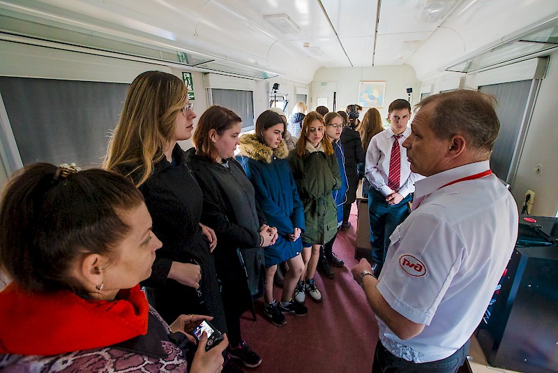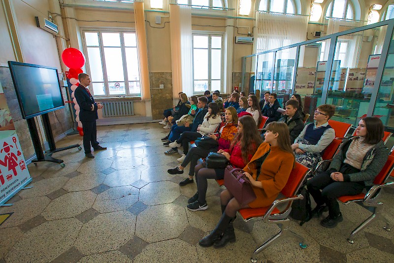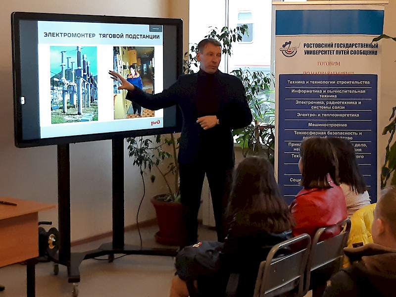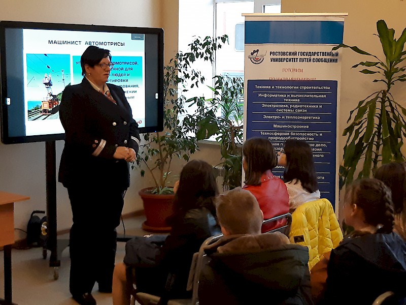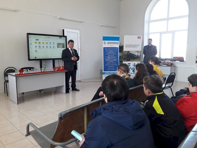 Участники «Мобильный вагон-профнавигатор» рассказали обучающимся общеобразовательных учреждений о железнодорожных профессиях, о работе железнодорожников, а также о перспективах развития отрасли. Начальник отдела довузовской подготовки и профориентационной работы РГУПС К.С. Фисенко рассказал школьникам о специальностях и направлениях подготовки в университете, возможностях интересной студенческой жизни будущих абитуриентов.