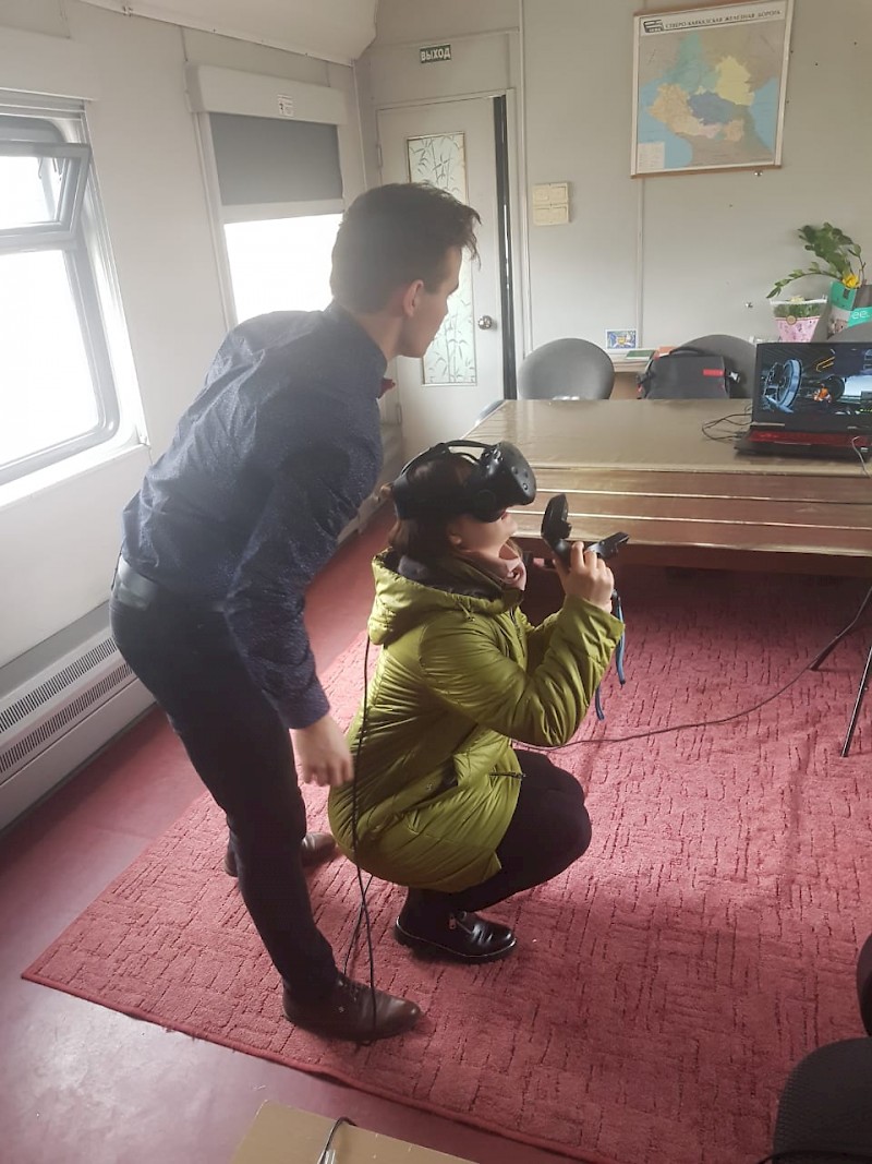 А разработку студентов факультета ИТУ РГУПС «Виртуальный тренажер осмотрщика вагонов» школьникам демонстрировал студент этого факультета С.В. Семенов.
