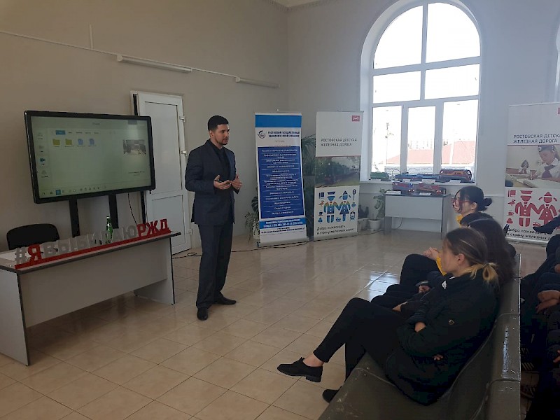Встречи со школьниками проходили на ж.д. станциях Минеральные Воды, Сальск, Тамань, Крымская.
