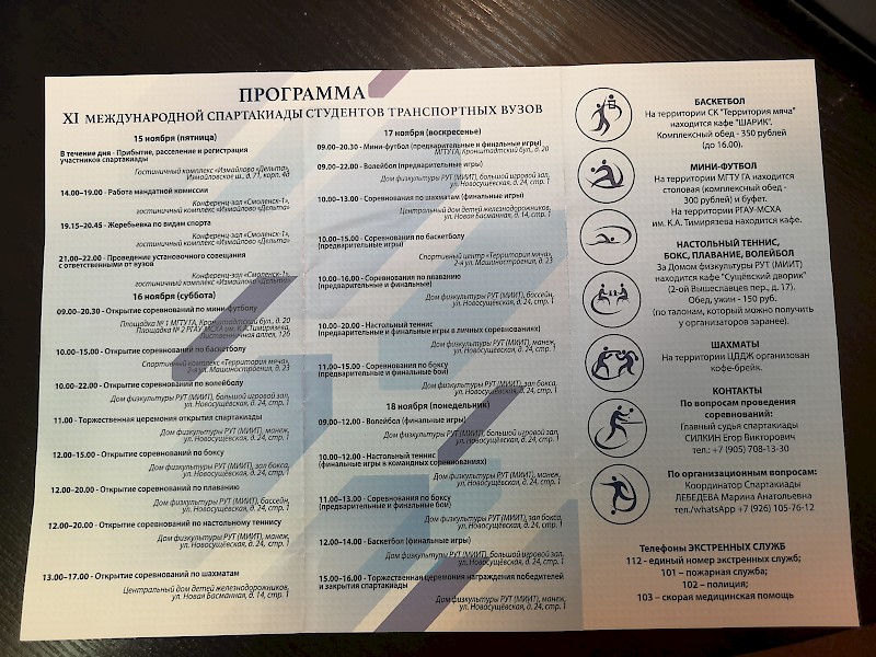 Спартакиада проходит в г. Москве с 15 по 18 ноября в рамках «Транспортной недели -2019» в Доме физкультуры Российского университета транспорта.