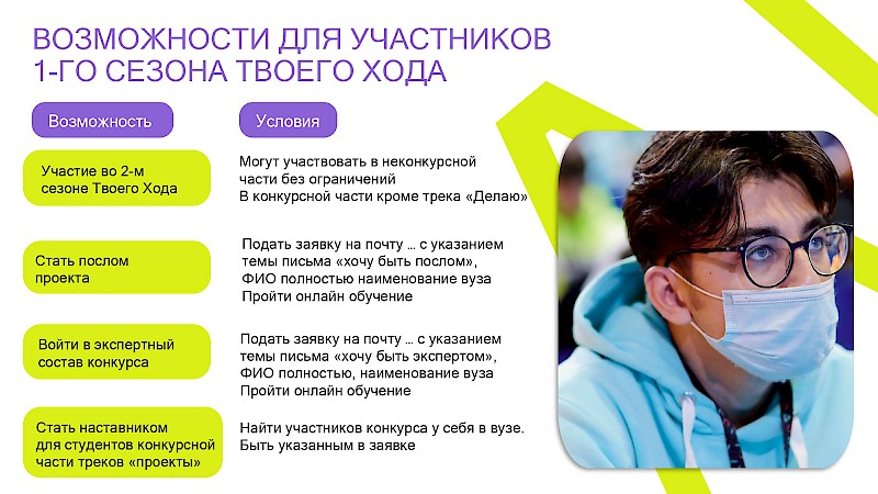 Участники проекта получат уникальную возможность установить связи с будущими работодателями, развить личные полезные навыки, а также выиграть деньги на обучение или сертификат на путешествие.