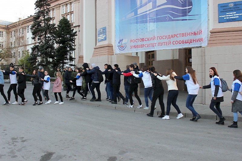 В преддверии празднования 90-летнего юбилея РГУПС, студенты всех факультетов провели флэш-моб. «Студенческий поезд» двигался от спортивного комплекса, проследовал через студенческий парк к главному корпусу университета, где все собравшиеся скандировали «С днем рожденья, универ!».