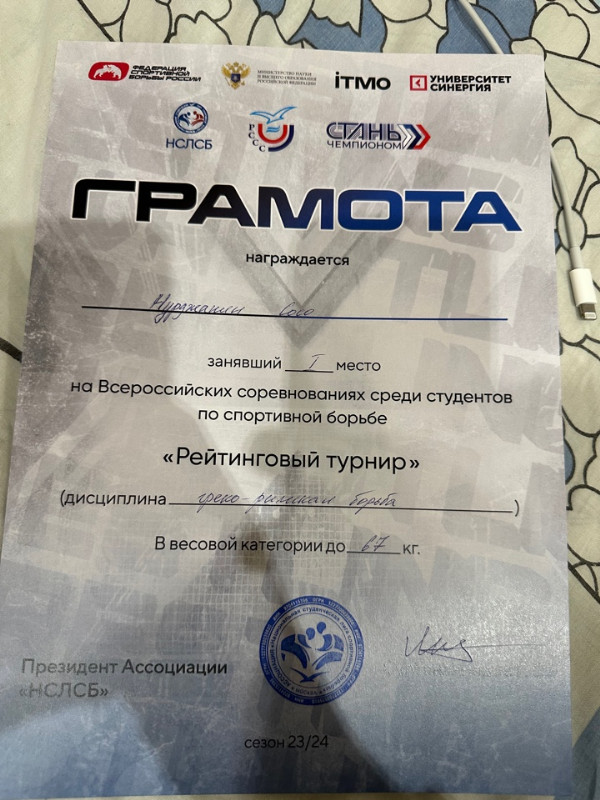 Студент факультета ЭУП гр. ПГБ-4-024 Сосо Нуржданян занял I место в весовой категории до 67 кг.