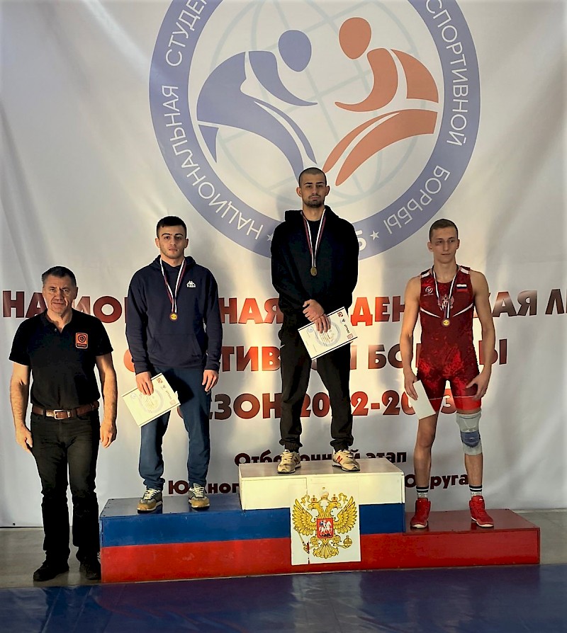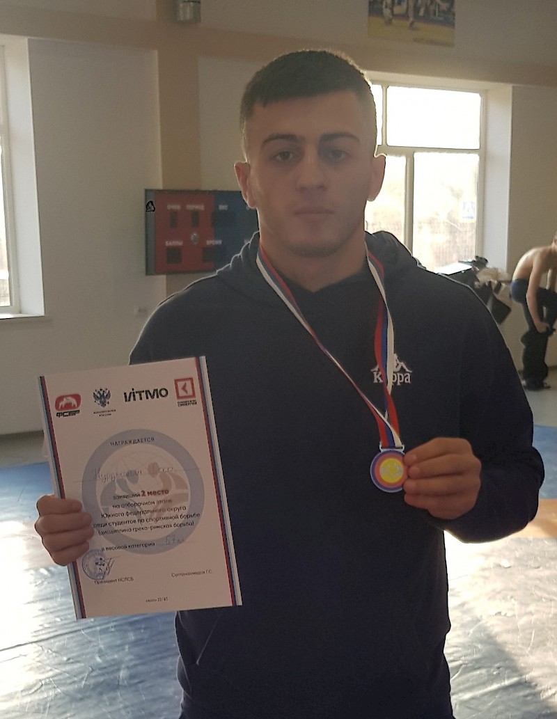 На отборочном этапе Южного федерального округа среди студентов по греко-римской борьбе успешно выступил студент РГУПС Сосо Нурджанян (ф-тет ЭУП ПГБ-3-024), который занял 2- е место в весовой категории до 67кг.