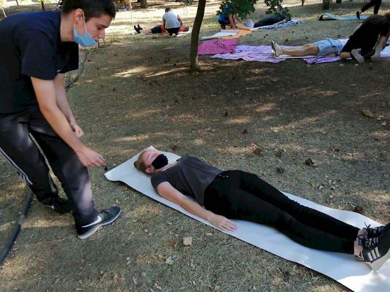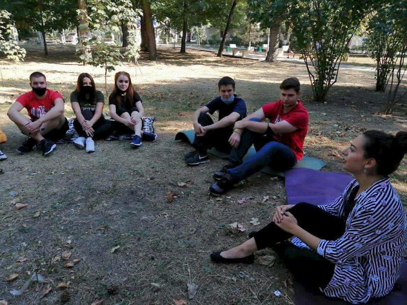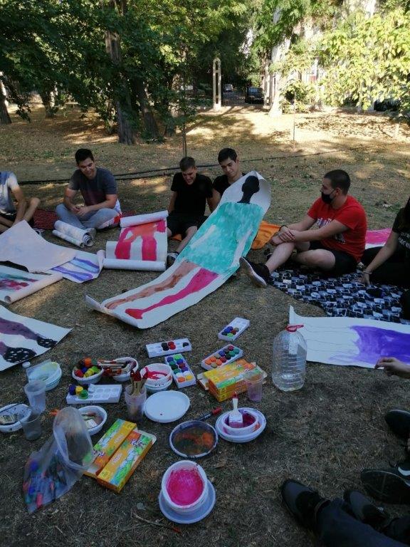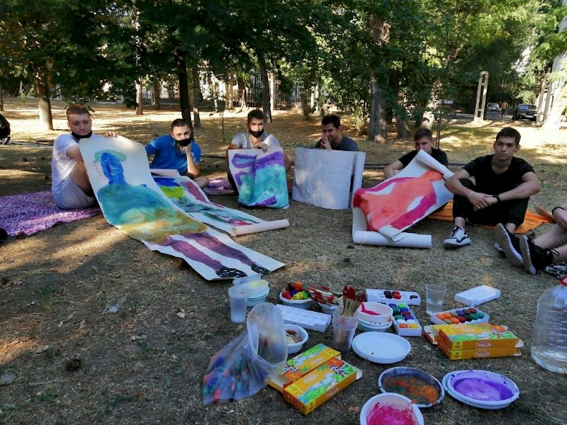 На открытом воздухе, сидя в кругу на ковриках, студенты группы МВС-3-696 от психолога УВР Брагиной Натальи узнали, что, оказывается, управлять своим внутренним состоянием не так уж и сложно. Для этого нужны только кисточки, краски и исследовательский интерес.