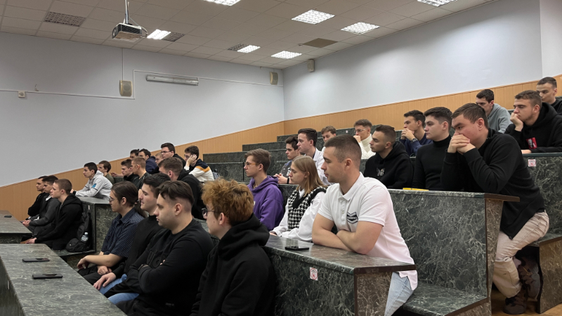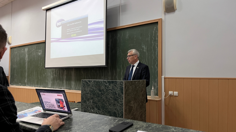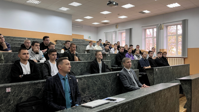 Олег Вячеславович Козырь рассказал студентам о социальном пакете, предоставляемом работникам компании, карьерной перспективе, имеющихся вакансиях и как подробно можно ознакомиться с интересующейся информацией.