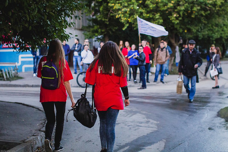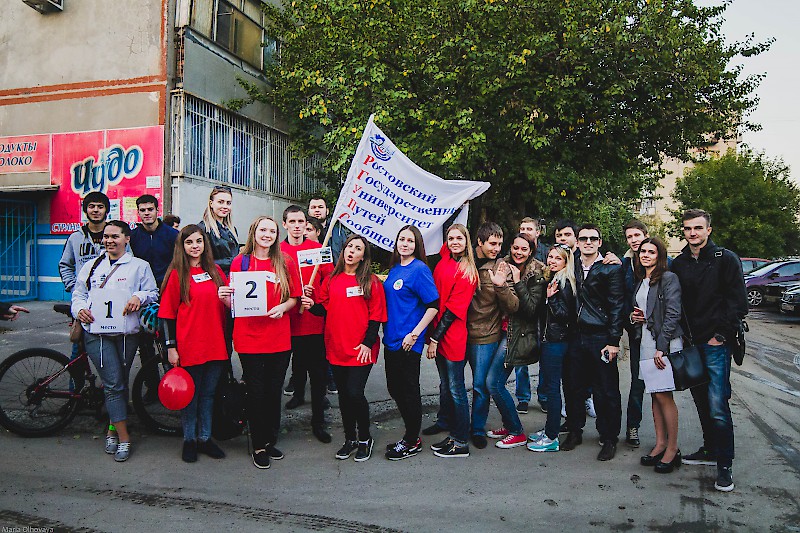 Участники флэш-моба, в числе которых студенты факультета УПП кафедры «Логистика и управление транспортными системами» стартовали в 17.10 от здания автодорожного колледжа (улица Большая Садовая, 28) на Стройгородок (площадка возле школы № 110 – улица Таганрогская, 118).