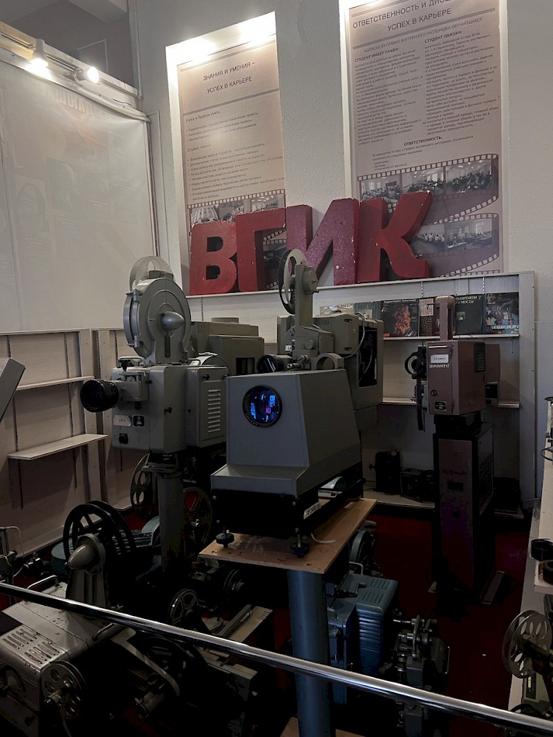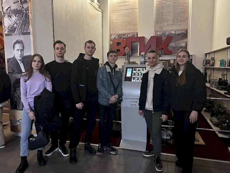 Перед просмотром фильма ректор филиала ВГИКа в г. Ростове-на-Дону Александр Резванов провел экскурсию для наших студентов по институту, показал локации съемок, созданные специально для практики студентов филиала ВГИКа, а также кинокамеры, на которых работали раньше и современные образцы.