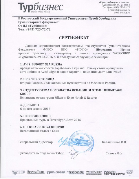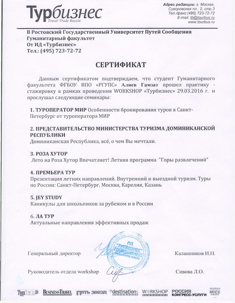 Как подчеркивают гуманитарии, полученный опыт становится важнейшим активом будущих профессионалов сферы туризма и гостеприимства, а сертификаты – ценной составляющей портфолио бакалавра.