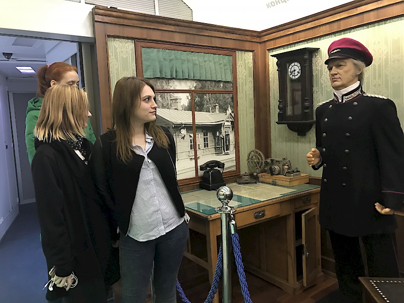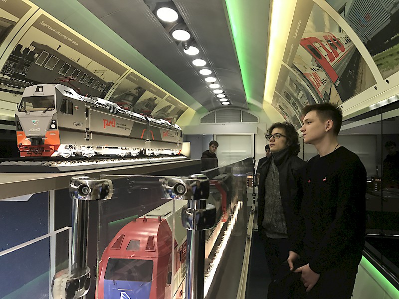 Ребята познакомились с современной системой управления железнодорожным транспортом. С огромным интересом посмотрели видео ролик, посвящённый новейшим техническим достижениям ОАО «РЖД» и направлениям международного сотрудничества компании. Особый интерес вызвала экспозиция, посвящённая периоду Великой отечественной войны - макет санитарного поезда; вагон, где проходили хирургические операции в годы войны. Экскурсия была очень познавательной для будущих специалистов железнодорожной отрасли.