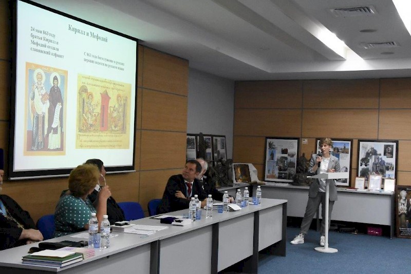 С приветственным словом к собравшимся обратился ректор Ростовского государственного университета путей сообщения, профессор Владимир Дмитриевич Верескун. Тему значения просветительской миссии святых равноапостольных Мефодия и Кирилла для славянства и проблематику исторических гипотез происхождения славянской письменности в своём выступлении рассмотрел Илья Геннадиевич Шарков. Проблематику изучения наследия святых просветителей славян продолжила аспирантка Ростовского государственного университета путей сообщения Анастасия Сергеевна Боева. Памятник святым просветителям славян равноапостольным Кириллу и Мефодию как молитва в бронзе стал темой выступления академика Российской Академии художеств, заслуженного художника России, действительного члена ИППО, скульптора Сергея Михайловича Исакова. Интересными были выступления студентов Института сферы обслуживания и предпринимательства (филиала) Донского государственного технического университета в г. Шахты Анны Полупановой, Виолетты Варданьян, Оксаны Калмыковой.
