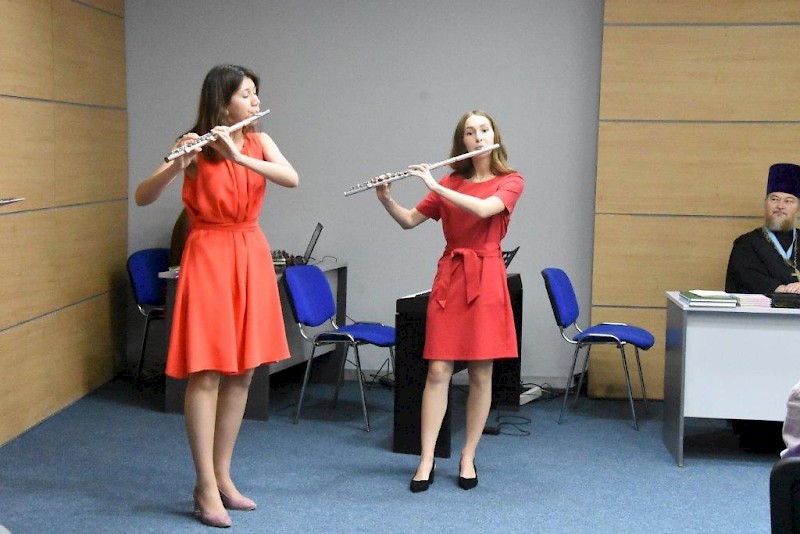 Программу научной конференции украшали выступления преподавателей и студентов Шахтинского музыкального колледжа (фортепиано, скрипки, флейты).