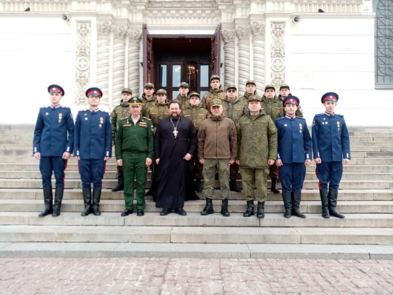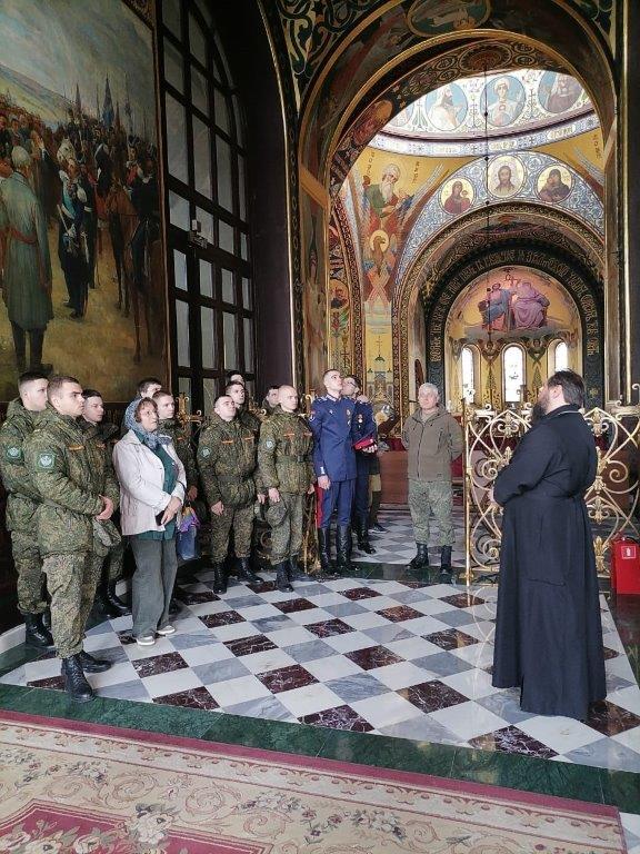 О. Георгий провел для студентов экскурсию по Собору, рассказал об истории строительства главного казачьего храма, о традициях донских казаков, о подвиге казачьих подразделений в годы Великой Отечественной войны 1941-1945 г. и об участии казачьих формирований в зоне специальной военной операции. В конце встречи о. Георгий ответил на вопросы и пожелал студентам вуза - нынешним участникам Парада, всего самого наилучшего.