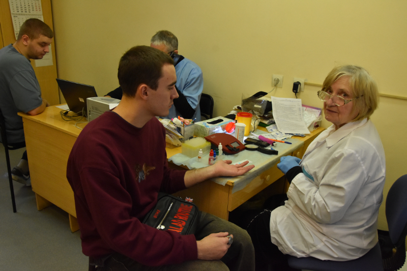 Перед донацией студенты, курсанты военного учебного центра и сотрудники РГУПС прошли необходимый предварительный осмотр и заполнили специальную анкету о самочувствии и состоянии здоровья.