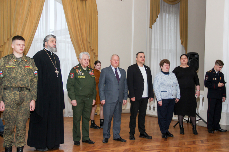 С приветственным словом к участникам обратились руководитель Отдела по взаимодействию с Вооруженными Силами и правоохранительными учреждениями, настоятель Главного православного воинского храма Южного военного округа, Протоиерею В.Ю. Волощук; председатель Ростовской областной организации Всероссийской общественной организации ветеранов (пенсионеров) войны, труда, вооружённых сил и правоохранительных органов П.П. Препелица; председатель Городского совета ветеранов города Ростова-на- Дону В.В. Гербач; проректор по молодежной политике и воспитательной деятельности РГУПС Е.Г. Шепилова; руководитель Ростовского регионального отделения ВОД «Волонтеры Победы» А.А. Толпыгин и руководитель штаба Ростовского Регионального патриотического движения «Дороги славы-наша история» А.А. Компаниец