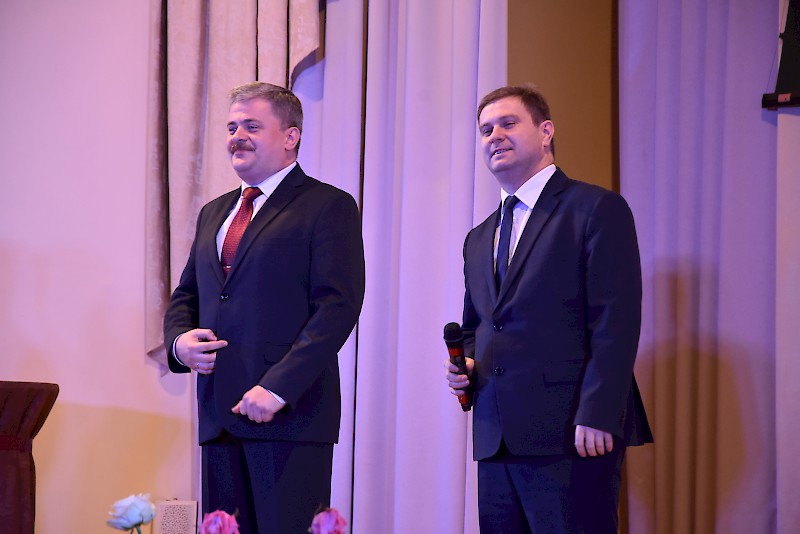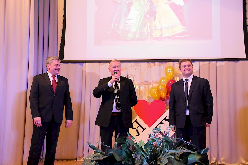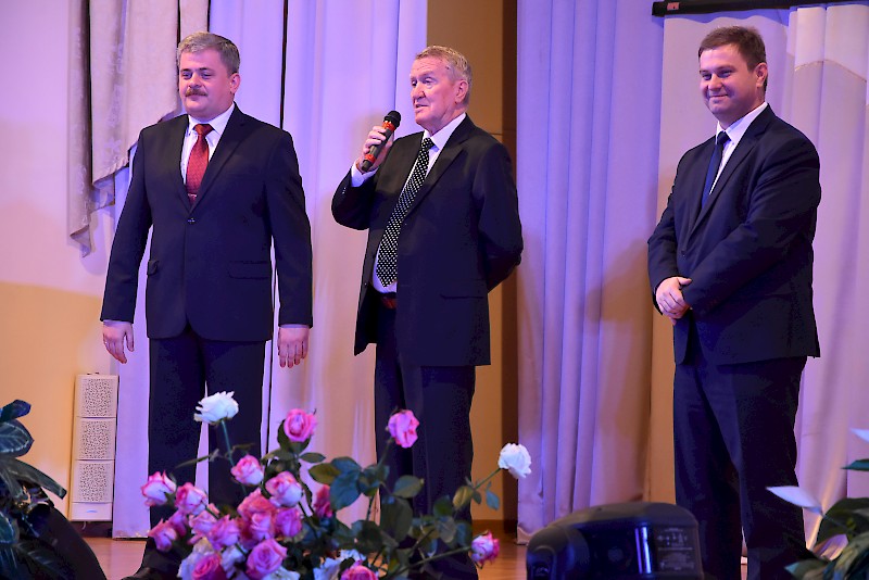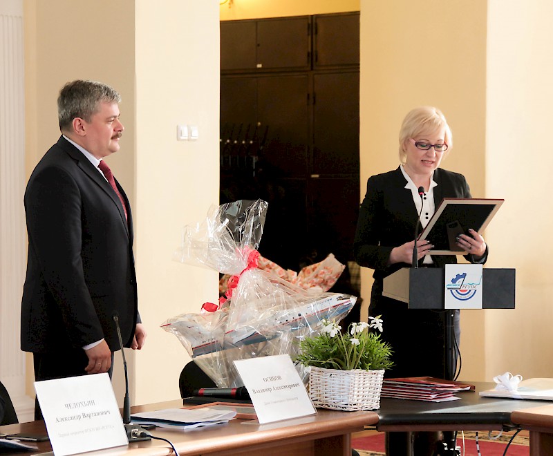 А.Ю. Голобородько, директор Таганрогского института им. А.П. Чехова (филиала) РГЭУ (РИНХ), который в прошлом преподавал на гуманитарном факультете РГУПС, поздравил собравшихся с праздником, подарив гуманитарному факультету РГУПС от себя и от имени генерального директора Таганрогского авиационного научно-технического комплекса им. Бериева Ю.В. Грудинина модель самолета Бе-200 как символ стремления к покорению новых высот.