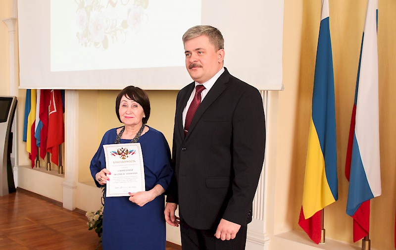 Начальник отдела развития и обучения персонала службы управления персоналом СКЖД Л.П. Корницкая выразила благодарность заведующим кафедрами В.В. Смеюхе (кафедра «Массовые коммуникации и прикладная лингвистика») и В.Г. Тахтамышеву (кафедра «Философия и история Отечества»). Почетной грамотой ДОРПРОФЖЕЛа СКЖД - филиала ОАО "РЖД" награждена доцент кафедры «Социальные технологии» Е.В. Андреева - как активный член профсоюза.