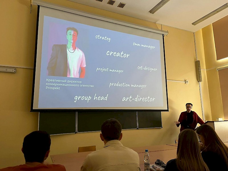 Кафедра «Массовые коммуникации и прикладная лингвистика» Гуманитарного факультета встречала гостя –Артура Шевченко, креативного директора коммуникационного агентства «PROSPEKT», выпускника 2018 года. Он провел для студентов направления подготовки «Реклама и связи с общественностью» мастер-класс на тему «Черная овца: фреймворк креативного лидерства». Будущие рекламисты и пиарщики узнали, как устроено коммуникационное агентство, в чем специфика работы над digital-проектами, каковы особенности системы co-creation, как создавать креативы, которые работают, и как за четыре года стать креативным директором, а после закрепили полученные знания в ходе командной игры.