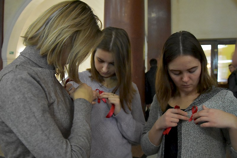 В преддверии всемирного дня борьбы со СПИДом прошла акция, призывающая студенческую молодежь вести здоровый образ жизни и информирующая о проблеме ВИЧ СПИДа, остро стоящей в современном мире. Волонтеры – представители студенческого профкома раздавали студентам информацию о том, где можно пройти тест на ВИЧ СПИД и вручали символ этого дня – красную ленточку. Студенческую акцию поддержали участники круглого стола на тему «Духовно нравственное воспитание молодых юристов в эпоху AT – технологий», проходившего в РГУПС. Акция организована управлением воспитательной работы и студенческим профкомом.