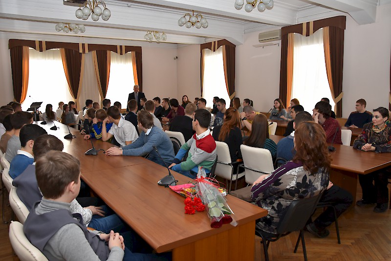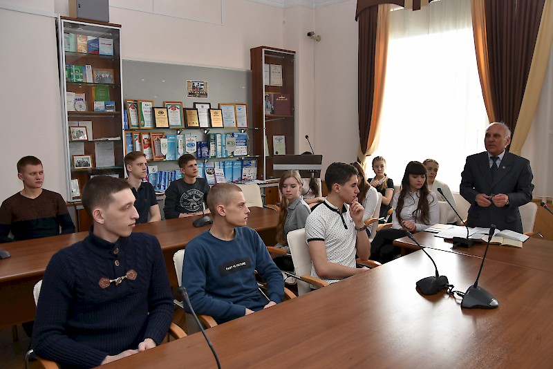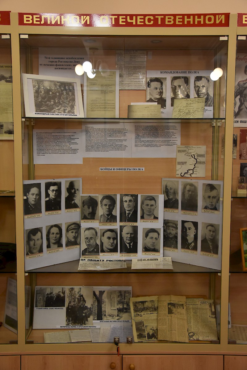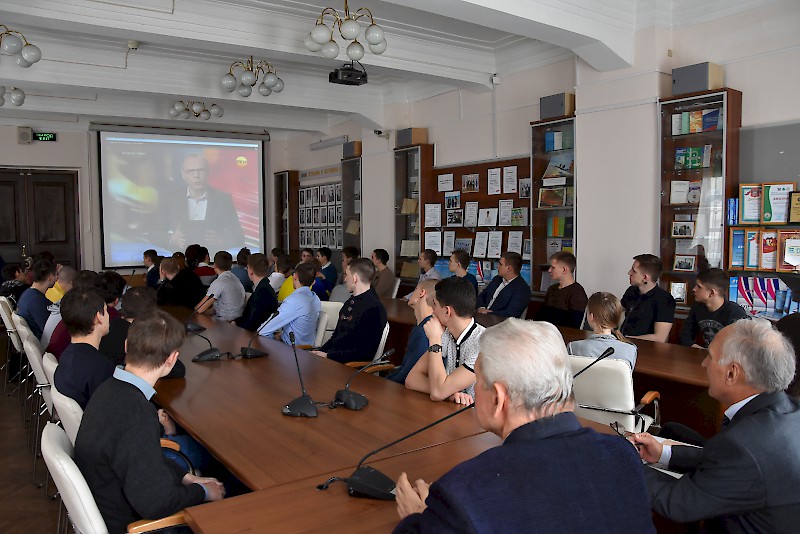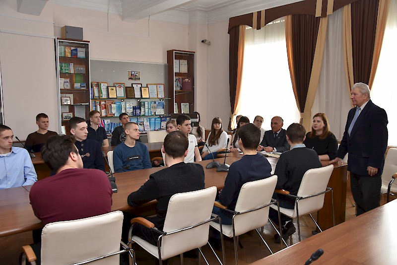 Председатель совета ветеранов РГУПС, доцент кафедры «Вагоны» Виктор Федорович Криворудченко и доцент кафедры «Безопасность жизнедеятельности» Виталий Николаевич Наконечный рассказали ребятам об истории нашего вуза - РИИЖТа в годы Великой Отечественной войны, о нелегких временах, которые пережил город Ростов-на-Дону в годы великих испытаний. В ходе беседы демонстрировались документальные кинохроники о важнейшей роли Красной армии в освобождении г. Ростова-на-Дону и трагических событиях в годы оккупации. Ростов-на-Дону получил звание Города Воинской Славы. В завершении встречи специалист по воспитательной работе Ольга Геннадьевна Хачкинаева прочитала несколько отрывков из книги ростовского писателя доктора филологических наук, профессора Вячеслава Смирнова «Ростов под тенью черной свастики» - это воспоминания очевидцев- ростовчан переживших две оккупации. Также ребята посетили обновленную экспозицию в выставочном комплексе ФГБОУ ВО РГУПС: история, наука, образование» посвященную Ростовскому стрелковому полку народного ополчения.