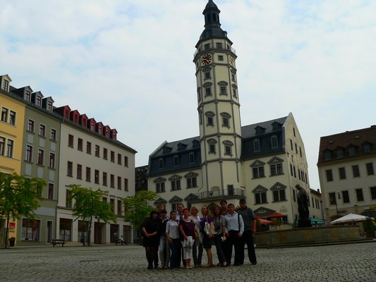 Последним пунктом программы пребывания стал город Гера — город-побратим Ростова-на-Дону, вытянувшийся на 17 километров вдоль реки Вейсе-Эльстер. В этом городе ребята смогли посетить предприятие общественного транспорта, осмотреть трамвайное депо и автобусный парк. Ребята посмотрели, как реставрируют трамваи, бегавшие по улицам немецких городов в начале прошлого века, а также прокатиться на ретро-трамвае по улочкам города. Для студентов РГУПС была организована встреча с руководителем отдела по работе с общественностью и побратимским связям госпожой Илоной Ризе, которая познакомила ребят с направлениями деятельности городской администрации по развитию сотрудничества с городами-побратимами. В непринужденной доброжелательной атмосфере ребята смоги поделиться своими впечатлениями от увиденного в Гере, а также подняться на башню городской ратуши и осмотреть экспозиции музея городской истории. Кстати, информацию о визите делегации нашего университета можно найти на официальном сайте города, пройдя по ссылке http://www.gera.de/sixcms/ detail.php?id=10213.