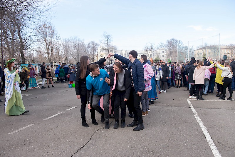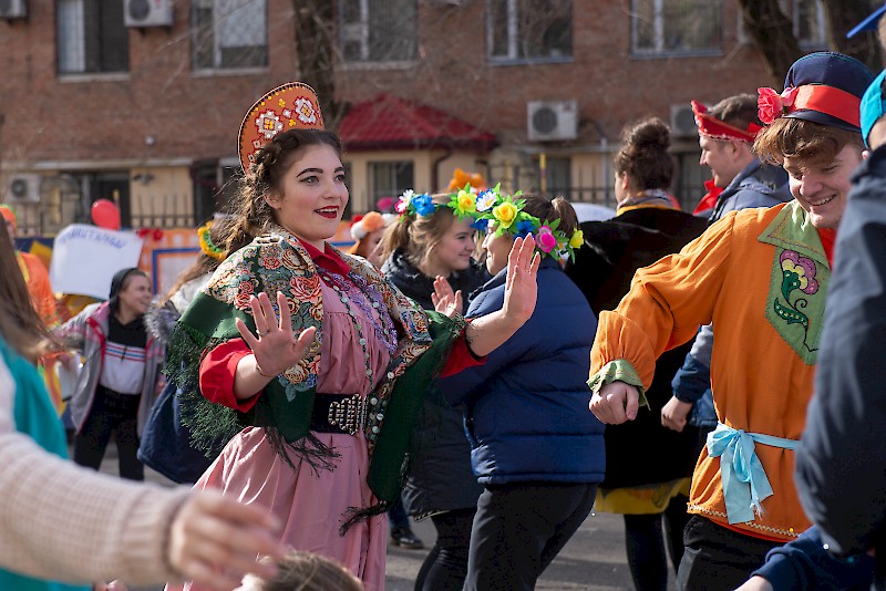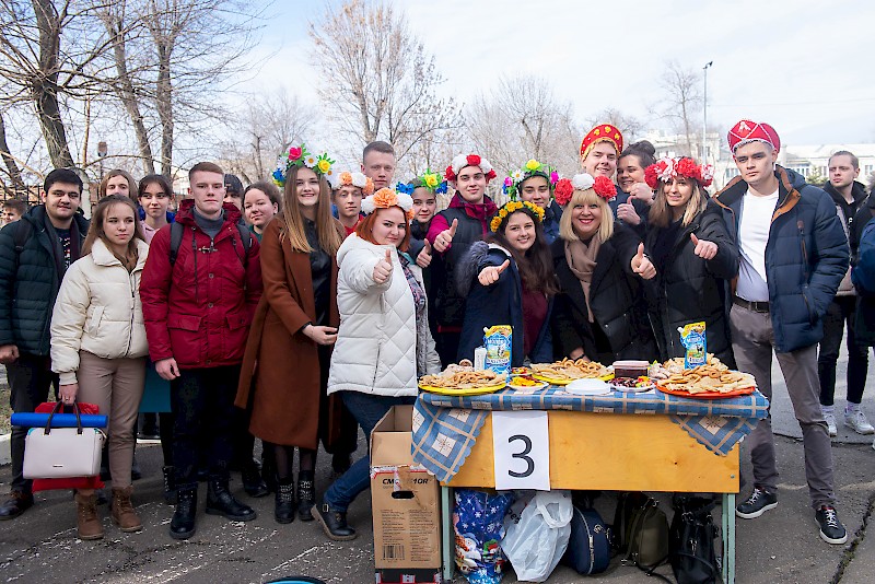 Масленица в разгаре. Ростовский государственный университет путей сообщения в самый лакомый день масленичной недели прошумел студенческим праздником «Широкая масленица». Студенты накрыли столы вкусными угощениями, организовали и провели традиционные забавы и игры, пели, танцевали и веселились.
