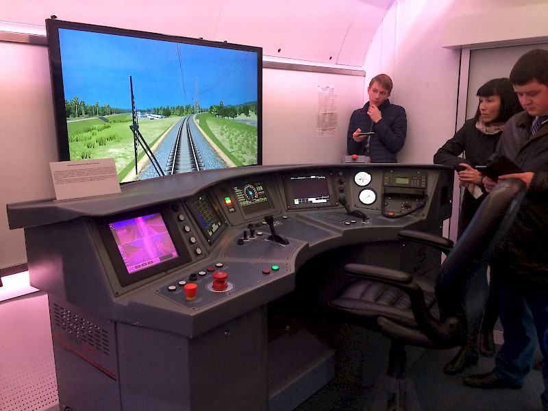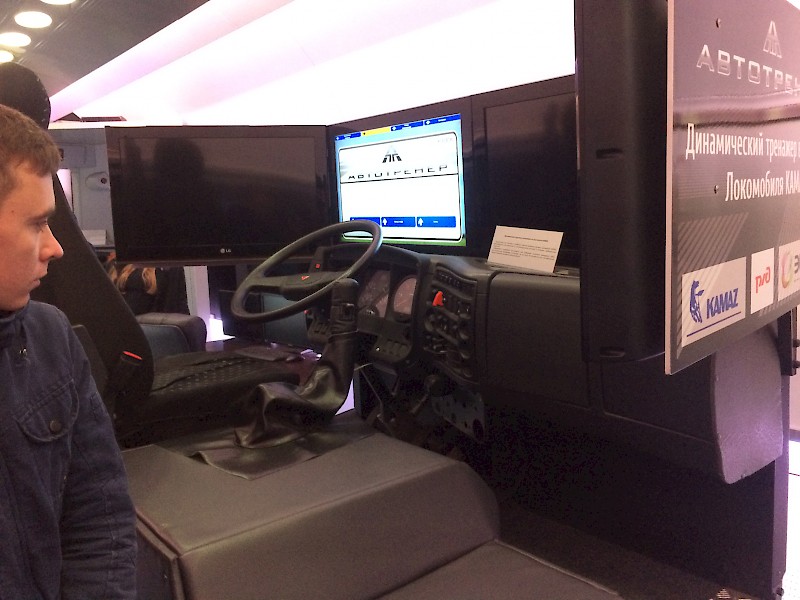 Вагоны оснащены новейшей техникой - тренировочными комплексами по обучению машинистов, логистов, водителей большегрузных машин, таких как "Локомобиль".