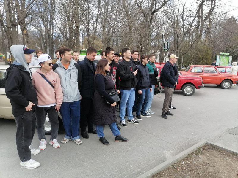 На территории парка им. Октябрьской Революции студенты с большим интересом посмотрели презентацию Андрея Лагузова - одного из организаторов, посетили выставку ретроавтомобилей «Запорожец», ознакомились с историей автомобилей, и особенностями каждой модели.