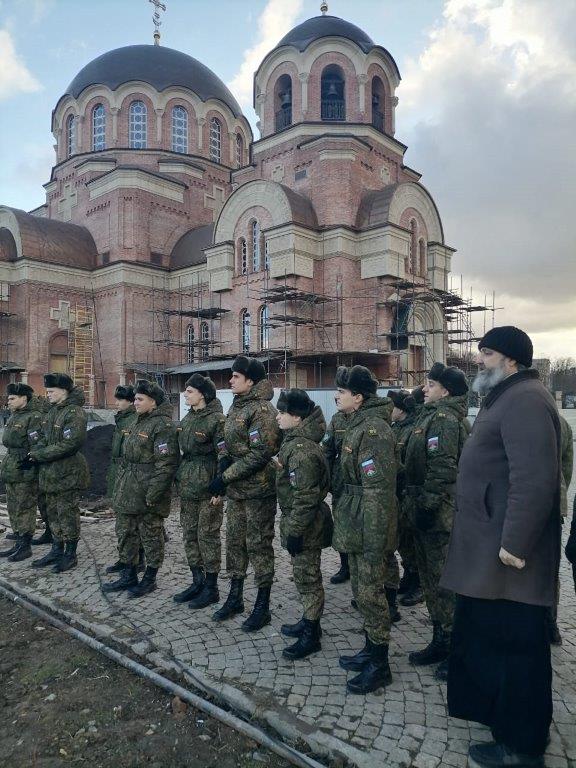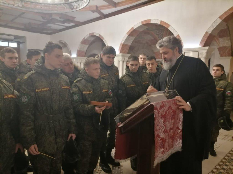 Настоятель храма побеседовал с студентами – будущими офицерами об участии священнослужителей в СВО; о взаимосвязи служения Отечеству и веры у будущих офицеров; о совершение таинств богослужения и участии в крестном ходе в зоне специальной военной операции; о поддержке наших бойцов.