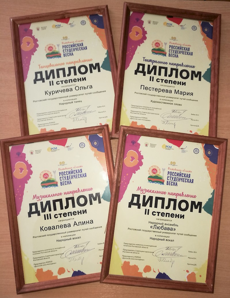 Достойными результатами завершилось участие нашего университета в Областной Студенческой весне. Участниками фестиваля традиционно являются студенты учреждений высшего и среднего профессионального образования Ростовской области. Впервые в этом году Межфакультетский фестиваль сценического искусства прошел в статусе зонального этапа областной Студенческой весны и впервые за многолетнюю историю участия творческой команде РГУПС удалось завоевать призовое место в общекомандном зачете.