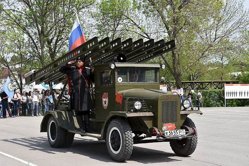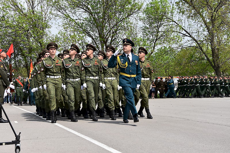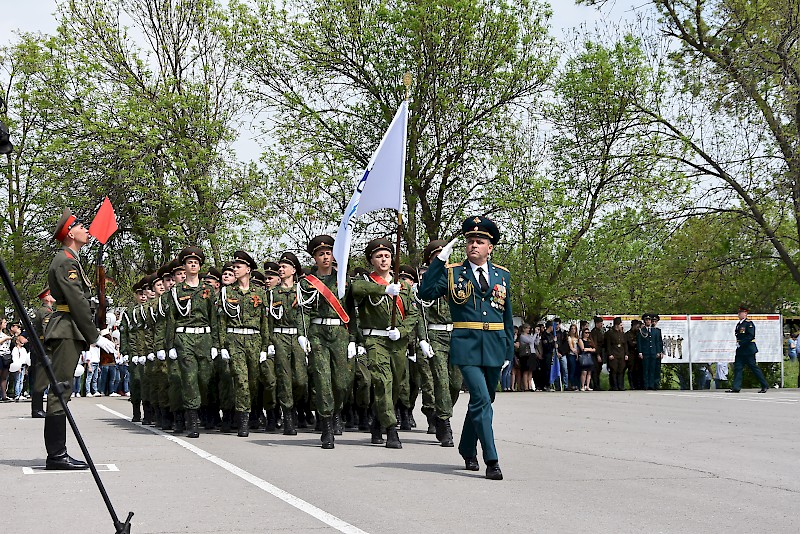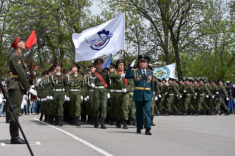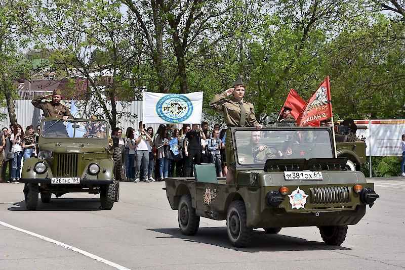В рамках программы праздника прошел митинг, парад студентов-курсантов военных кафедр и военно-учебных центров донских вузов, парад военной техники времен Великой Отечественной войны, театрализованное представление.