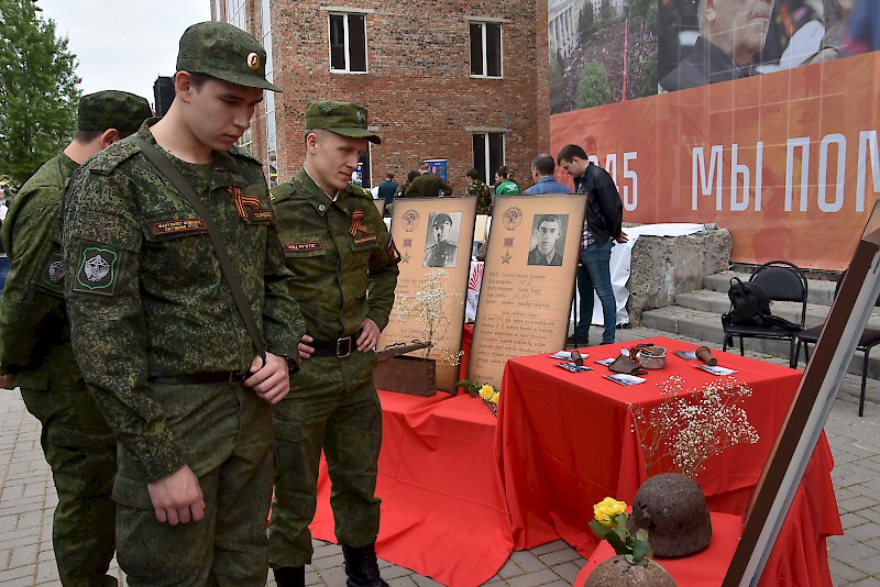 На территории полигона работали выставки: оружия времен Великой Отечественной войны, современного оружия, военной техники, экспозиция комнаты патриотического воспитания молодежи Общежития №3 РГУПС, посвященная героям Великой Отечественной войны.